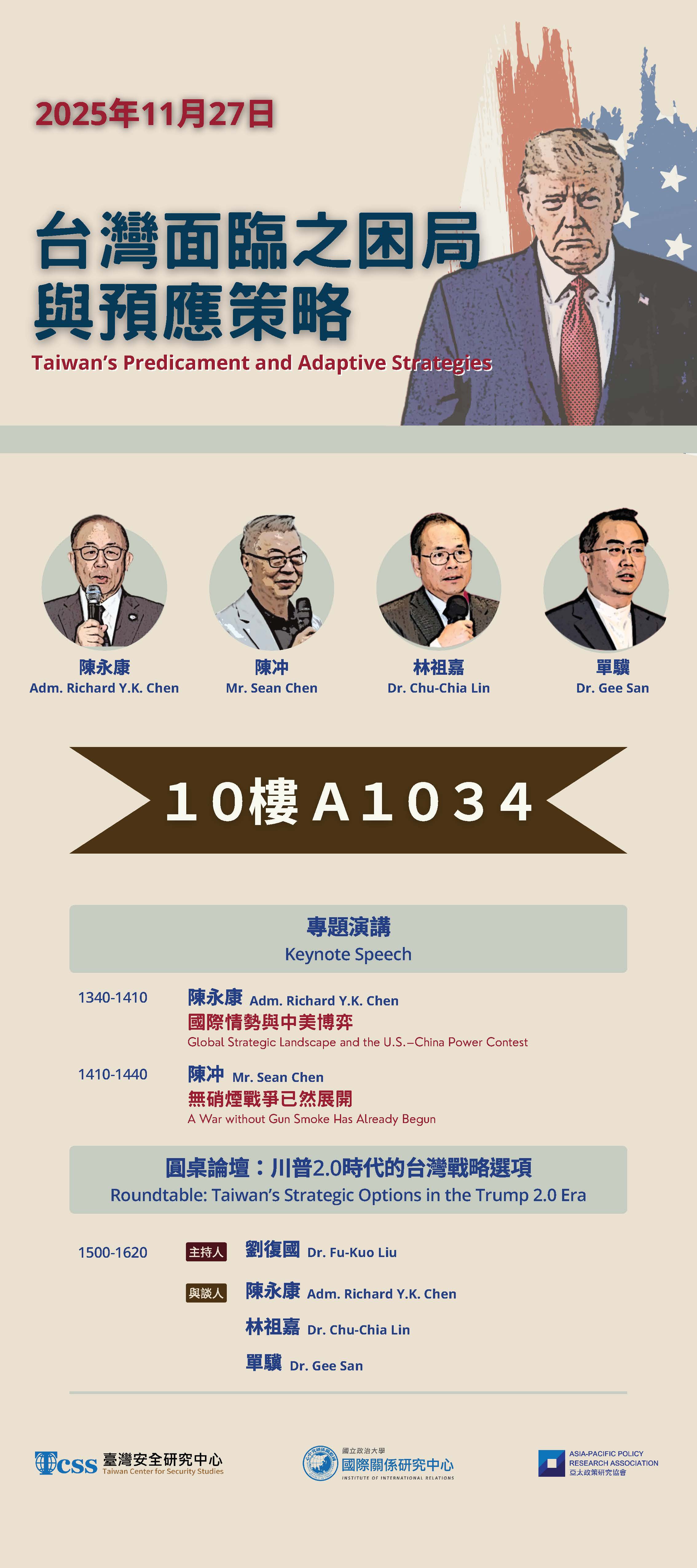 除了不知己不知彼,台灣另一困局為「入戲卻不在戲中,僅在舞台邊緣而非舞台中央」。前幾日,Thomas Friedman針對美國的烏克蘭28點和平計畫發表評論,認為烏克蘭的處境自戰爭開始已命中注定是個dirty deal,但如今川普所做的更糟,已是filthy deal(齷齪交易),提醒我們許多事除了知己知彼,要掌握時機環境,也要知道看戲的人怎麼想,因為結果往往沒有最壞只有更壞。如同近期高市早苗言論風波,冷靜來看,每個人都有談到台灣,但我們都無緣參與其中,而每一通電話或一句言論,又都深深影響台灣的未來。33年前,小鬼當家2在紐約廣場飯店拍攝,飯店老闆(川普)卻臨時不顧合約,表示必須讓自己入鏡才可拍攝,直至劇組修改劇本加了句六字台詞才順利開拍。討論到國際關係,此事也可看出川普個性,談好的事情仍可能有變數,我們只能多加了解,做更好的應變。